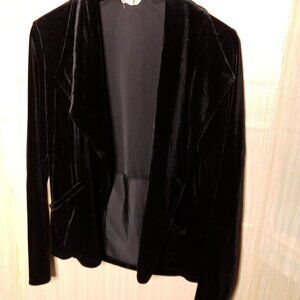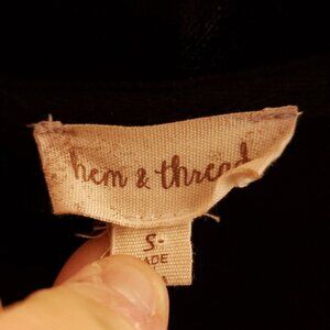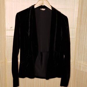 Hem & Thread Womens Black Velvet Open Front Cardigan Top Small.Hem & Thread women’s black velvet open front cardigan top small. Has pockets. Good condition. Measurements are: 26” sleeve, 24 ½" from shoulder to hem, and approx. 20 ½" from armpit to armpit.