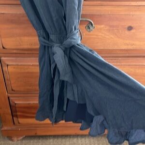 Hem & Thread Women’s Blue Dress With Ruffles and Tie Size Small NEW