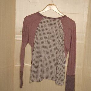 Hem & Thread Womens Maroon Paisley Mixed Material Silky Thermal Top Small. Hem & Thread women’s maroon paisley mixed material silky & thermal long sleeve shirt small. Gently used condition. Measurements are: 28” sleeve, 23 ½" from shoulder to hem, and 22 ½" from armpit to armpit.