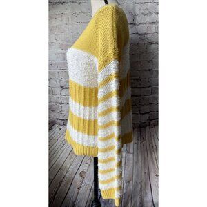Hem & Thread Womens Sweater Musatrd Yellow Ivory Color Block Cotton Blend L