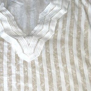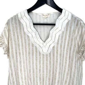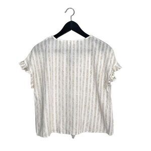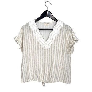 Hem & Thread Womens Striped Top Blouse Ruffle Cap Sleeve Tie Knot Hem Beige Size Small Crochet