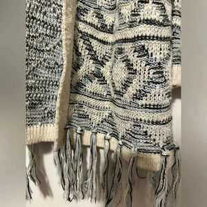 Hem & Thread blue and cream patterned fringe cardigan size S/M