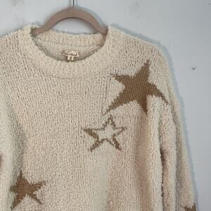 Hem & Thread eyelash plush knit crewneck metallic star knit crewneck sweater M