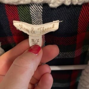 Hem & Thread plaid vest with Sherpa lined collar sz M/L blue green red white