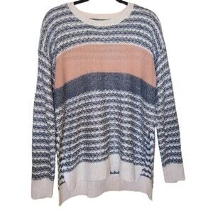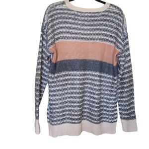 Hem and Thread Size Large Cream Gray Wavy Stripe Crewneck Pullover Sweater NWOT