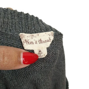 Hem and Thread Sweater Women Size M Grey Long Sleeve Stripe Contract