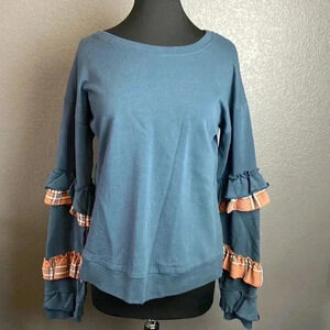 Hem & Thread Blue Ruffle Sleeve Sweatshirt Size Medium 0451