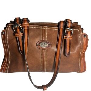 HEMA ZHUOFAN Buckle Handle Vegan Leather Brown Bag