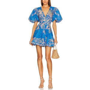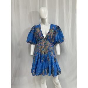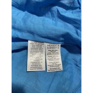 Hemant And Nandita Blue Linen Floral Short Dress Size L