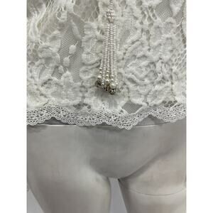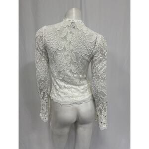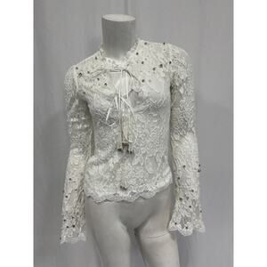 Hemant And Nandita 'Reet' Cream Nylon Top Size XS: nylon flower net, long sleeves, tie front.