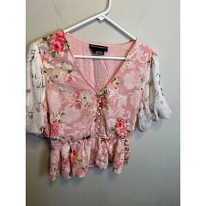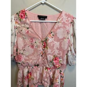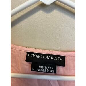 Hemant & Nandita Anthropolgoie Floral Pink Rose Garden Puff Sleeve Blouse L