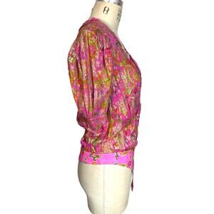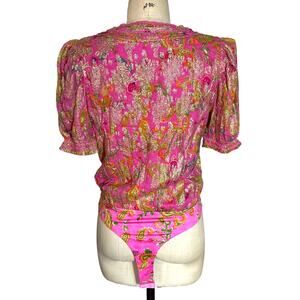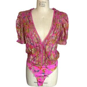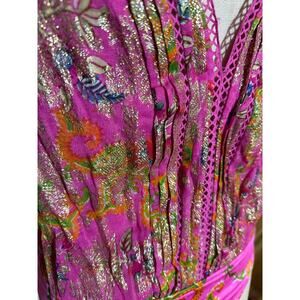 Hemant & Nandita Bela Bodysuit in Metallic Pink Floral Size Small