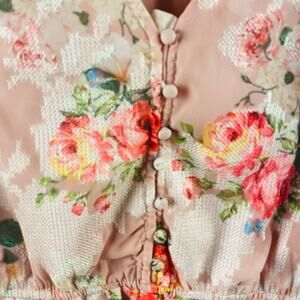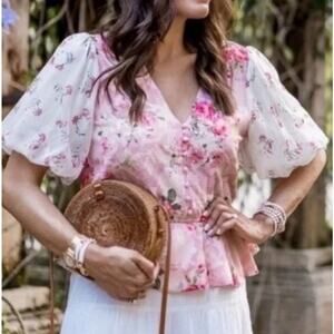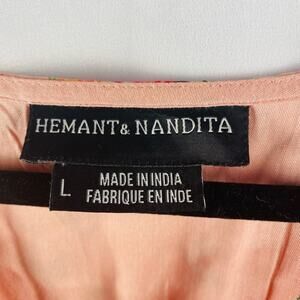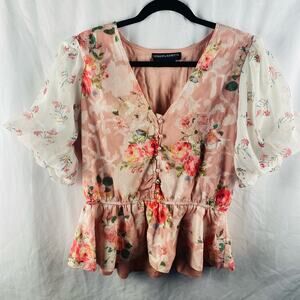 Hemant & Nandita Floral Pink Peplum Sheer Sleeve Blouse Size Large
