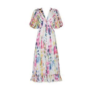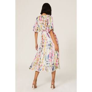 Hemant & Nandita Jorah Multicolor Tie Dye Print V-Neck Puff Sleeve Midi Dress S