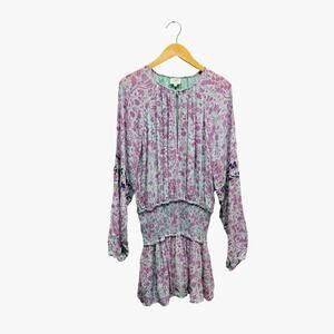 Hemant & Nandita Layla Smocked Waist Mini Dress Purple Size Small