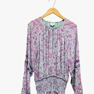 Hemant & Nandita Layla Smocked Waist Mini Dress Purple Size Small
