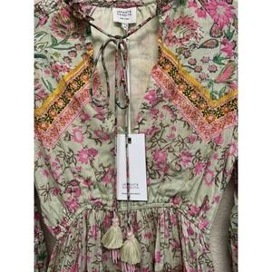 Hemant & Nandita Nora Metallic Floral Nora Dress Women’s Size XS Sage Pink NEW