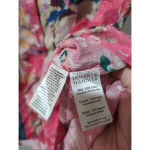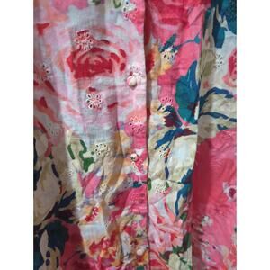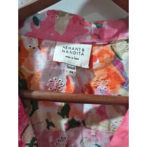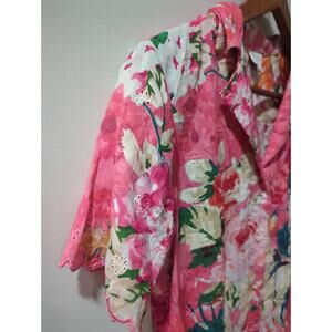 Hemant & Nandita Pink Floral Eyelet Button Down Shirt Blouse