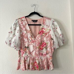Hemant & Nandita Rose Garden Floral Boho Blouse Size Medium Peasant