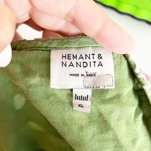 Hemant & Nandita Zaira Eyelet Floral Long Sleeve Mini Cut Out Dress Green XL