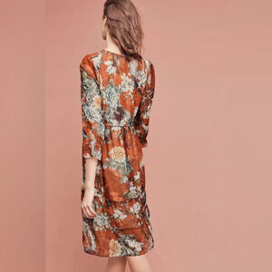 Hemant & Nandita Zeri Dress Size 4 Floral Boho Peasant Rust Orange Anthropologie