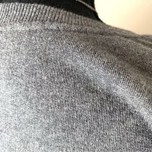 Crew neck with ribbed neckline and cuffs. Multi colored stones at the shoulders. All stones are in tact - no missing stones. Approximate measurements taken laying flat