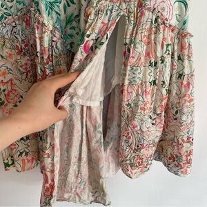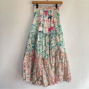 Hemant and Nandita Cotton High Waist Printed Midi Skirt Slit Tiered Colorful XS