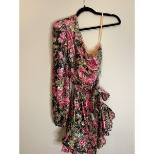 Hemant and Nandita Kilim Mini Dress Pink Size Large One Shoulder NEW $354 [jb]