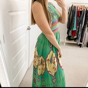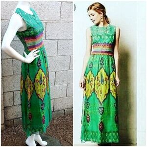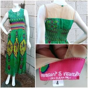 Anthropologie Hemant Nandita Mintzita Maxi Dress Sz 4 Green Tribal & boho Sleeveless