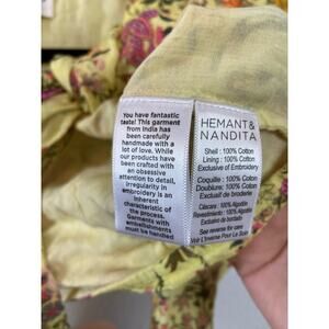 Hemant and Nandita Women's Pria Cropped Yellow Floral Tie-Front Top Size M