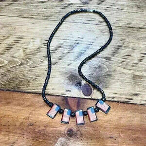 Hematite American flag patriotic necklace, 4th of July, unisex