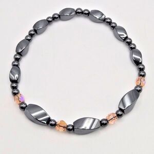 Hematite Beaded Handmade Stretch Bracelet with Pink Glass Bead Accents