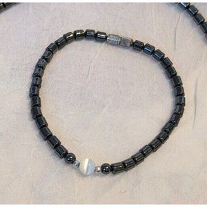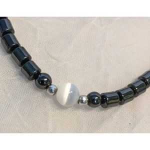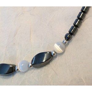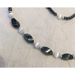 Hematite Beaded Necklace Matching Bracelet Black White Jewelry Stone Style Fun