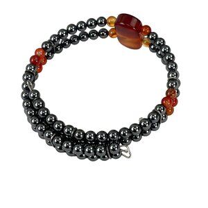 This exquisite bracelet is a harmonious blend of hematite and carnelian beads, thoughtfully strung to create an accessory that commands attention and admiration. The central gemstone accent serves as the pièce de résistance, adding an element of elegance and sophistication to the piece. Designed with a stretch fit, it's both stylish and comfortable.
