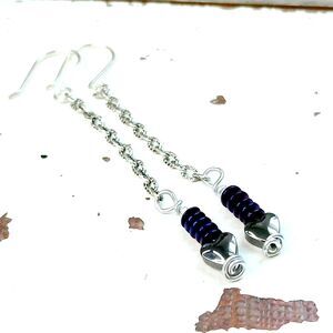 Silver ear wire hooks accented with silver chain & coated hematite beads