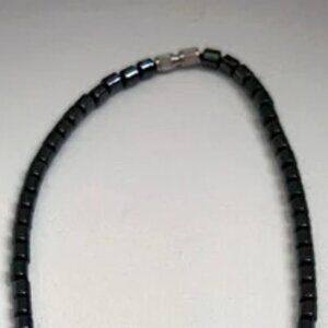 Hematite Donut Pendant Necklace Pink Cats Eye