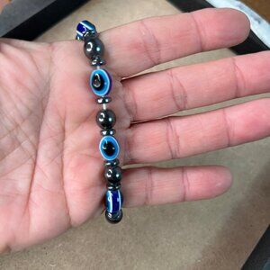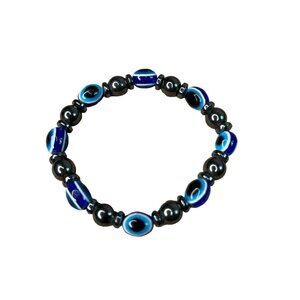 Elevate your style and spiritual protection with these hematite and evil eye beaded stretch bracelets. Perfect for daily wear or as a thoughtful gift.