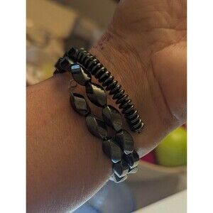 100% Magnetic Hematite Bracelet Anklet 3 beaded rows. Beautiful stones. One end has magnetic coils.