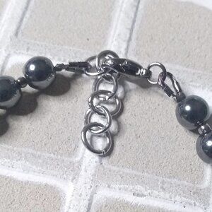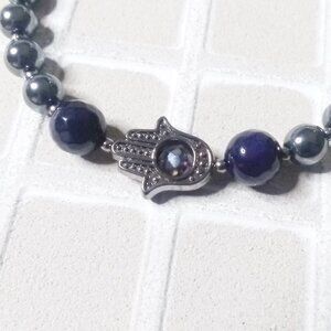 Wear hematite for it's calming properties! I can literally feel this when I string new bracelets - by the time I'm done , I feel totally relaxed, calm and focused and mellowed out. This stone also stimulates concentration and focus, enhances memory and original thought. When coupled with the Hamsa Hand as an additional sign of protection + blessings, Hematite grounds and protects; it strengthens our connection with the earth, giving a safe and secure feeling.
