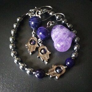 This listing is for the Hematite + Purple Agate Hamsa Hand Bracelet - the earrings or the Amethyst Heart are available separately - check my other listings!