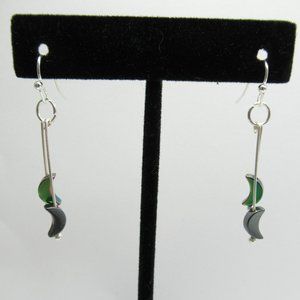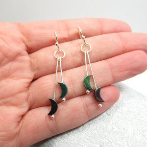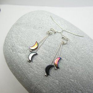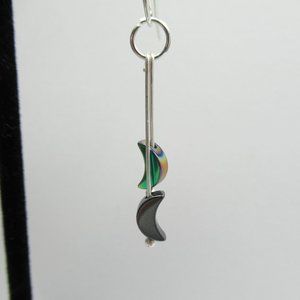 This listing is for the titanium coated hematite and plain hematite moon dangle earrings pictured. They are made with silver tone nickel free findings and earwires. They were made by me and are new and unworn.