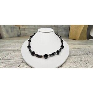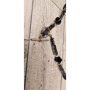 Beautiful pre-owned hematitle beaded necklace. All beads are in beautiful condition, with minimal signs of use/wear. Hematite beads are square, faceted and round. There are also clear glass round beads. Toggle Closure. Measures 20" Long.