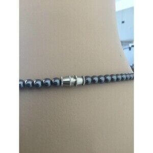 Hematite necklace with purple beads. Color: black and purple Length: abt. 18” Clasp: Barrel