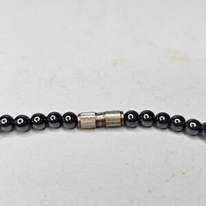 Hematite Round Bead and Gold Tone Spacer Beaded Necklace 18"L