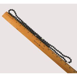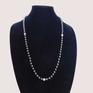 Hematite Set Beaded Necklace 30" Pierced Fishhook Earrings Black White Floral