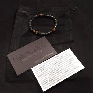 Hematite & Skulls “Balance” Energy Bracelet 7” Hematite is for balance. It helps with focus, concentration, will power, reliability, courage, confidence, and optimism. This bracelet is based on a stretch cord for ease-of-use and is made in the USA with positive energy it is a size 7". Which should fit a medium wrist. Made in the USA with positive energy. Comes with a similar gift bag as shown. 0117-1117