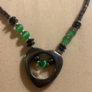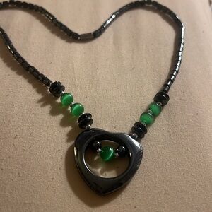 Hematite Stone with green cat eye beads Necklace