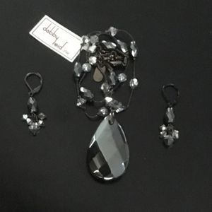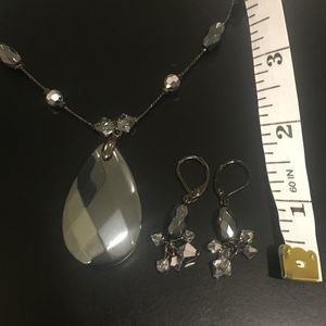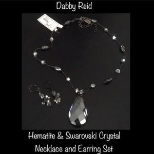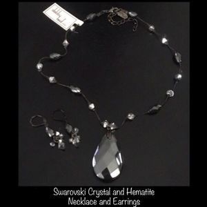 NECKLACE: FACETED HEMATITE PENDANT ON HEMATITE PLATED NECKLACE WITH SWAROVSKI CRYSTALS (NO LONGER PRODUCED)