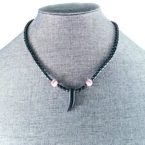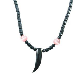 Magnetic hematite beads necklace with a dark gray metallic luster.