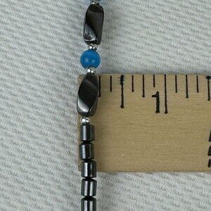 Hematite and Blue Beaded Necklace With Barrel Clasp Unisex 18 Inches Long